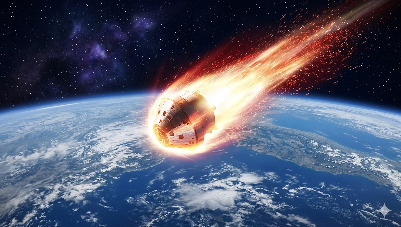Powrót nie należał do łatwych. Orion wszedł w ziemską atmosferę z prędkością niemal 40 000 km/h, a jego osłona termiczna musiała wytrzymać temperaturę sięgającą 2760°C. Przez kilka minut trwała nerwowa cisza radiowa (tzw. blackout), wywołana przez plazmę otaczającą statek.